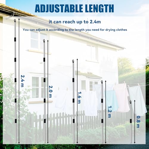 - 【Hochwertige Materialien】Wäscheleinenstange ist aus Edelstahl, perfekt für lästige windige Bedingungen. Es wird auch nach Jahren der Nutzung nicht rosten