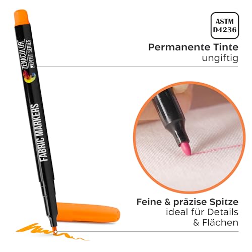 - Hervorragende Qualität permanenter Textilstifte für Kleidung – Ungiftig und reich an Pigmenten. Die Textilfarbe in den Stoffen ist beständig gegen Verblassen, wasserfest und waschmaschinenfest (bis 30°C). Personalisieren Sie weiße T-Shirts, Wäschemarkierungen, Jutebeutel, Turnbeutel, unbedruckte Stoffbeutel oder bemalen Sie Schuhe für lang anhaltende Effekte. Funktioniert am besten auf heller Kleidung.