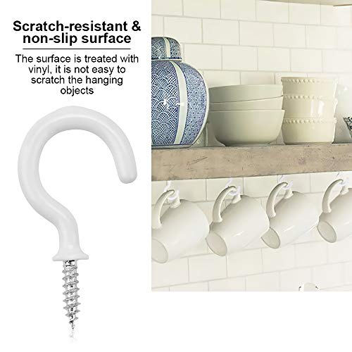 AFASOES 50 Stück Schraubhaken Wäscheleinenhaken Weiß 47 * 17mm Tassenhaken Tassen Cup Haken Hakenschrauben Pflanzen Haken mit Gewinde Einschraubdecken Ösenhaken Deckenhaken für Weihnachtsbeleuchtung