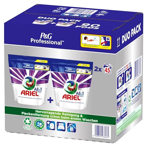Ariel Professional All-in-1 Pods Color Waschmittel, 90 Waschladungen, (2 x 45 Kapseln), Ausgezeichnete Fleckentfernung schon ab der ersten Wäsche