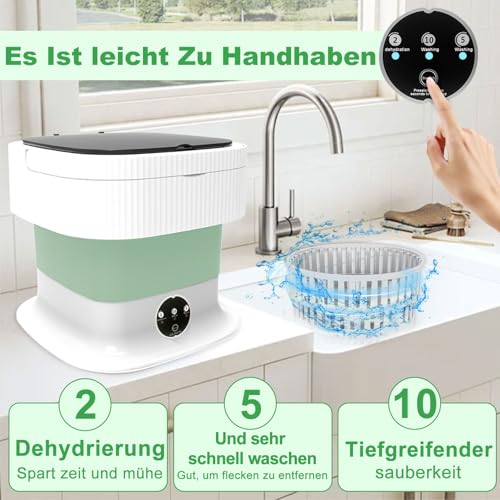 - Camping Waschmaschine, 15L 2kg 2 in 1 Mini Wasch-maschine mit Schleuder und Wäschetasche, Tragbare Waschmaschine Tiefenreinigung von Unterwäsche, Babykleidung, Socken, Wohnungen, Schlafsäle, Grün