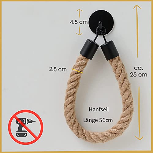Chedin Toilettenpapierhalter, Handtuchhalter, Schwarz Matt OHNE Bohren Vintage, Naturfaser Hanfseil Wc-Papierhalter, WC Papier Halterung, Dekoration für das Badezimmer (ohne Bohren)