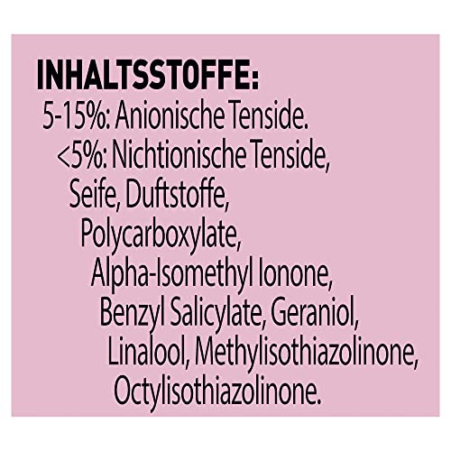 - Der Flaschenkörper von dem Flüssigwaschmittel ist 100% recycelbar und besteht zu 70% aus recyceltem Plastik (ohne Kappe und Etikett)