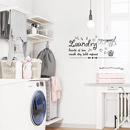 CREATCABIN Wandaufkleber Waschküche Vinyl Zitate Wanddekoration Türschilder PVC Abnehmbar Für Wäsche HWohnung Wand Dekorationen–Jede Menge Spaß Waschen Trocknen Falten Wiederholen 23×12 Zoll(Schwarz)