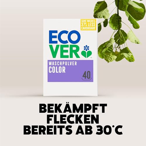 Ecover Color Waschpulver Konzentrat Lavendel (3 kg / 40 Waschladungen), Colorwaschmittel mit pflanzenbasierten Inhaltsstoffen, Waschmittel Pulver für natürlich reine Buntwäsche, 3 kg