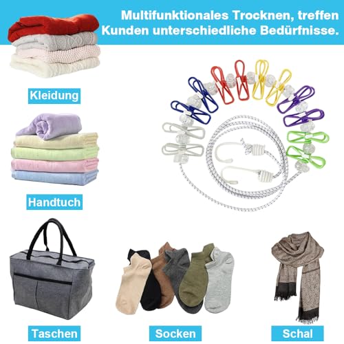 - ✨ Paket beinhaltet: Sie erhalten 2-Pack Reise Waschleine. Jede tragbare Wäscheleine mit 12pcs bunten Clips. Genug, um Ihre täglichen Bedürfnisse zu erfüllen
