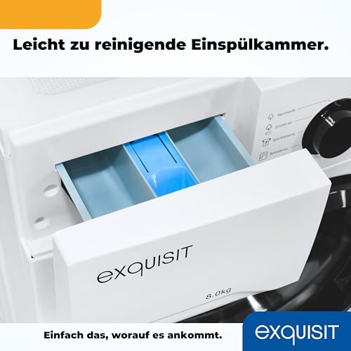Exquisit Waschmaschine WA8014-020A weiss | 8 kg Fassungsvermögen | Energieeffizienzklasse A | 12 Waschprogramme | Kindersicherung | Startzeitvorwahl