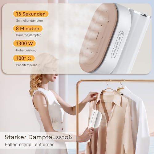 - 【Glättet Falten mühelos】: Das 15-sekündige schnelle Vorheizen des Reisebügeleisens mit 1300 W Leistung gibt Hochtemperaturdampf von bis zu 248 °F mit bis zu 22 g/Min. ab. Ausgestattet mit einer 10 Quadratzoll großen Keramikheizplatte kann es 3–5 Kleidungsstücke bis zu 8 Minuten lang bei maximaler Dampfleistung bügeln und dabei Falten beim Waschen, Trocknen, Bügeln und Falten problemlos entfernen.