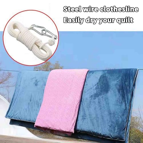 - SUPERSTARKE TRAGFÄHIGKEIT: Die Wäscheleine wird zum Trocknen von Steppdecken im Freien verwendet. Sie verfügt über einen eingebauten Stahldrahtkern, der dafür sorgt, dass die Wäscheleine eine starke Tragfähigkeit hat und stabil und sicher ist.