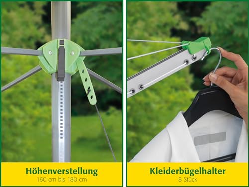 - Enorme Trockenlänge: Der Wäscheschirm bietet auf der 51 Meter langen Wäscheleine Platz für 5-6 Waschmaschinenladungen