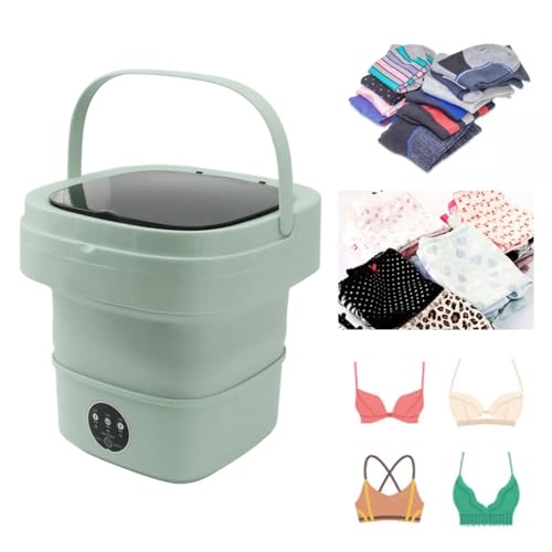 Kleine Zusammenklappbare Waschmaschine, Tragbarer Dörrapparat, 6 L, Mini-Eimer-Waschmaschine für Unterwäsche, Socken (Grün)