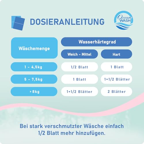 - Nachhaltiges Waschen: Ocean-Wash Waschmittel Blätter tragen dazu bei, unsere Ressourcen zu schonen. Jeder Inhaltsstoff der Waschmittel-Streifen wurde auf Wasserbelastung und biologische Abbaubarkeit getestet.