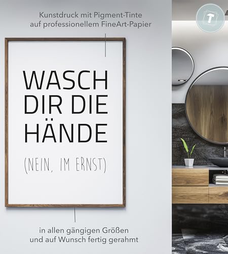 Papierschmiede® Bilder Home Kunstdruck mit Rahmen A4 (21×30 cm) Spruch Poster Zuhause Schrift Bild Wanddeko in schwarz weiß, Sprüche für Büro WC Küche Badezimmer Gäste WC Wasch Dir die Hände