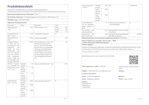- ✅ ENERGIEEFFIZIENZKLASSE A: Die PKM Waschmaschine ist mit der Energieeffienzklasse A sehr energieeffizient und verbraucht lediglich 51 kWh pro Jahr.