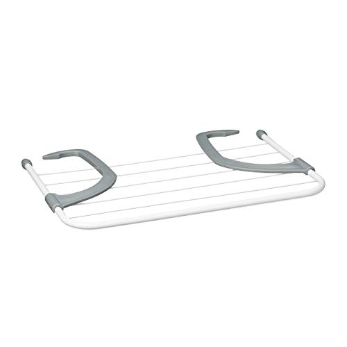 Relaxdays Wäscheständer — zum Aufhängen von Heizkörpern und Balkon-Trockengestell, klein, 3 m große Trocknungskapazität, weiß, 50 cm lang