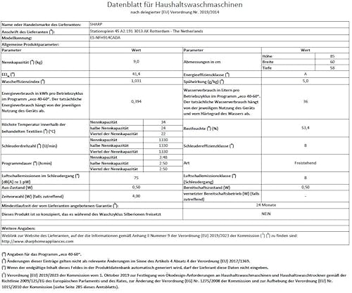 - Energieeffizienzklasse A (A bis G), sogar 20% geringerer Energieverbrauch gegenüber dem Grenzwert der Energieklasse A