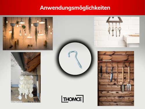 - ✅MADE IN EU: Hochwertige THOMCE Einschraubhaken, hergestellt in der EU, bieten höchste Qualität und Sicherheit für Hobbyhandwerker und DIY-Projekte.