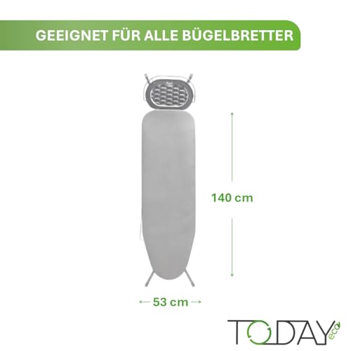 Today – Universeller Bügelbrettbezug 140×53 cm – Metallisiertes Baumwollgewebe mit Saugfähigem Schaumstoff – Kordelzug-System – Hitzebeständig – Made in Italy – Grau