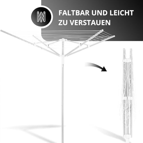 • Vonia Wäschespinne mit Bodenanker, 45m Wäschespinne faltbar für drinnen und draußen – faltbar (Weiß)