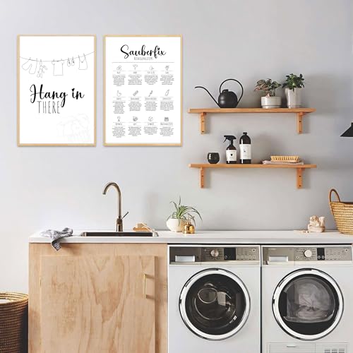 - 📌 PRAKTISCHE & ÄSTHETISCHE MOTIVE – Enthält 4 hochwertige DIN A3 Poster: Laundry Today or Naked Tomorrow, Waschsymbol-Tafel, Hang in There und Reinigungs-Tipps