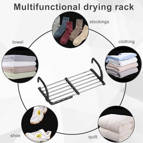 Leikurvo Wäscheständer: Ausziehbar Zusammenkla Balkontrockner (42-72cm), Handtuchhalter Heizkörper Wäscheständer Kleiner beheizter Balkontrockner Wand Innen Außen, Hängetrockner, Edelstahl (Schwarz)