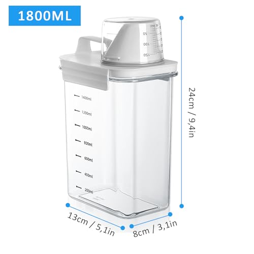 Waschmittel Aufbewahrung Feuchtigkeitsbeständig Waschpulver BehäLter – 1800ml Luftdichter Waschmittelspender mit Messbecher – zur Aufbewahrung von Waschpulver und Flüssigwaschmittel