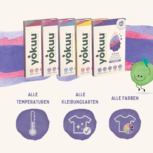 YOKUU Probiotische Reisewaschmittel Blätter | 64 Ladungen | Lavendel | Ökologische Waschblätter Schwarze & Weiße Wäsche | Ultra-Konzentriert, Vordosiert & Wasserlöslich